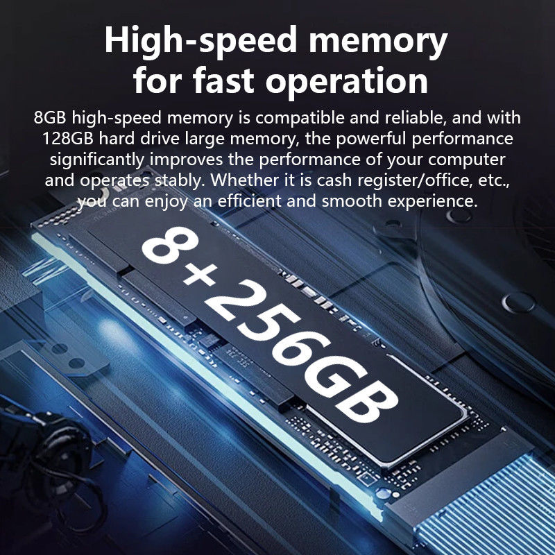Com8 GB de RAMe um jejumSSD de 256 GB, este terminal POS garante uma multitarefa suave, acesso rápido a dados e desempenho estável sob altas cargas de trabalho.enquanto a unidade de estado sólido de 256GB oferece amplo armazenamento para bancos de dados de inventárioEsta configuração é ideal para lojas de varejo de grande volume, supermercados, restaurantes, restaurantes, restaurantes, restaurantes, restaurantes, etc.e centros de negócios.