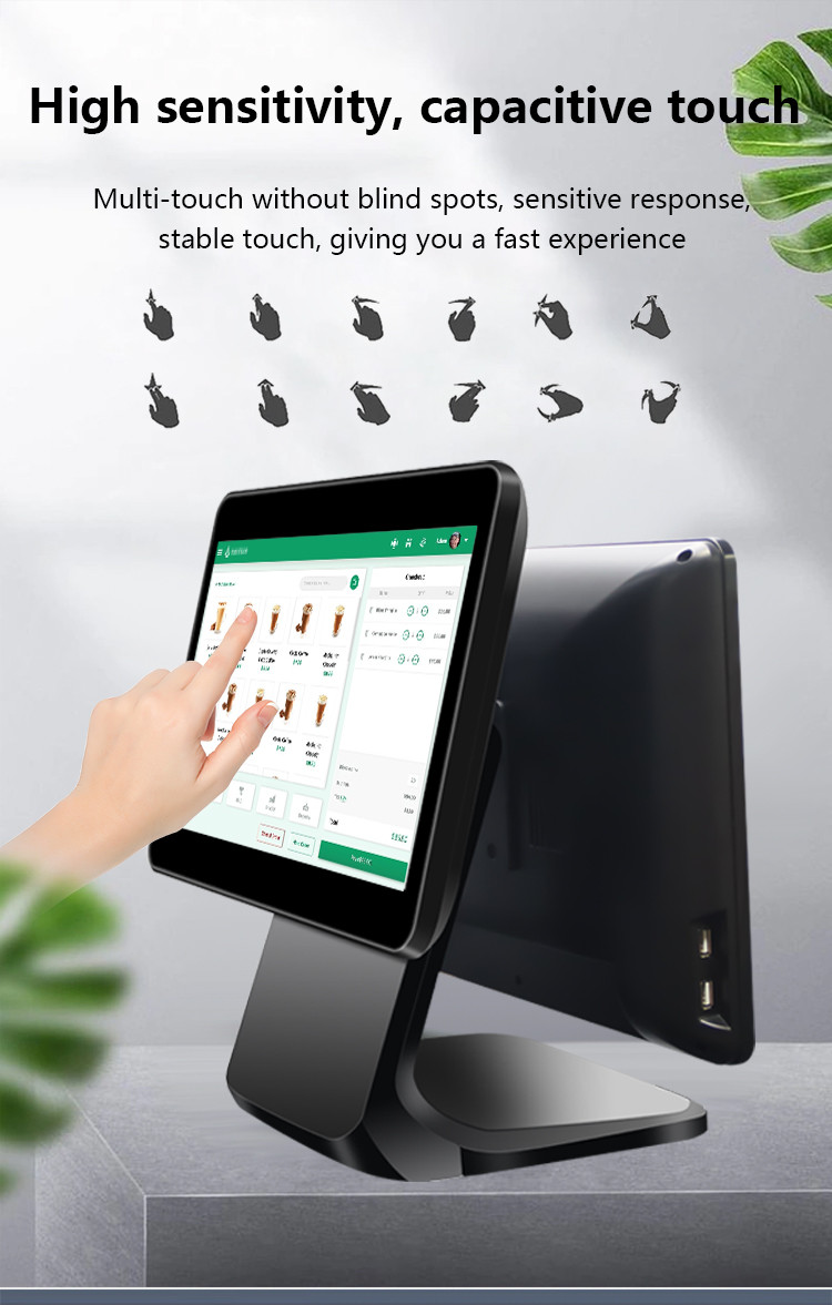 Esta máquina POS possui umEcrã sensível ao toque capacitivo de 10 pontos, permitindo uma entrada precisa e multi-toque, assim como usar um smartphone ou tablet.Permitindo uma operação rápida e intuitiva em ambientes de retalho ou restaurante movimentadosA tela é altamente sensível, durável e resistente ao desgaste, garantindo confiabilidade a longo prazo no uso comercial.tornando-o ideal para fluxos de trabalho compartilhados ou de tela dupla.