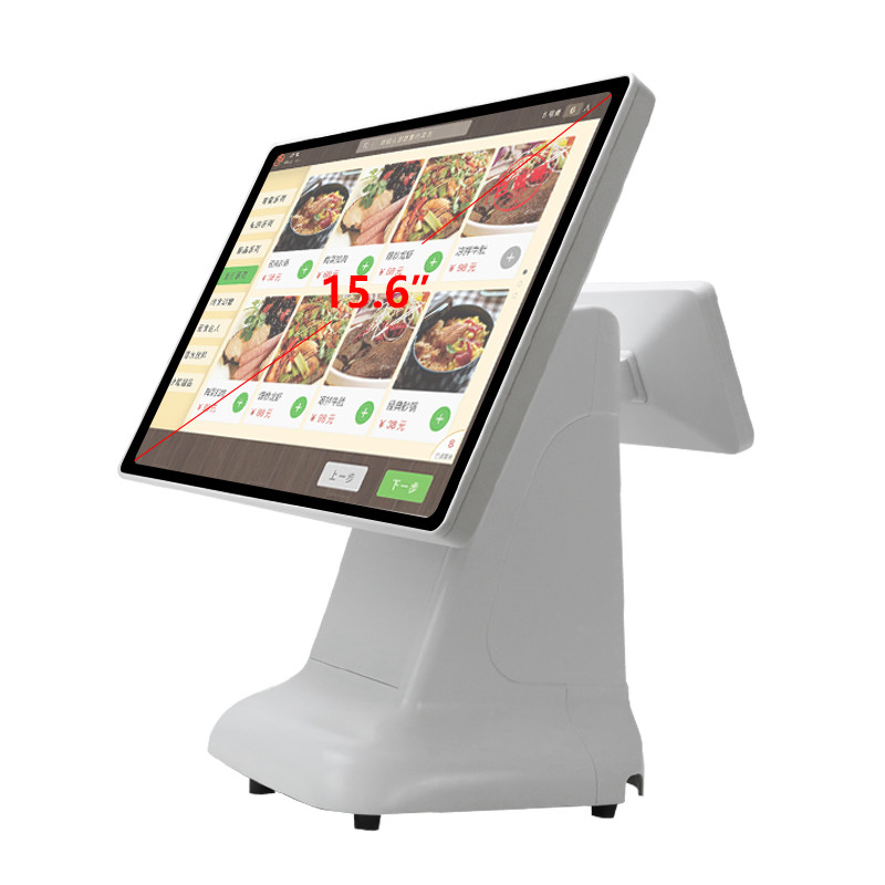 Máquina POS de caixa Windows Design de plástico de estilo simples e tela dupla de 15,6 polegadas All-in-One para Windows 10