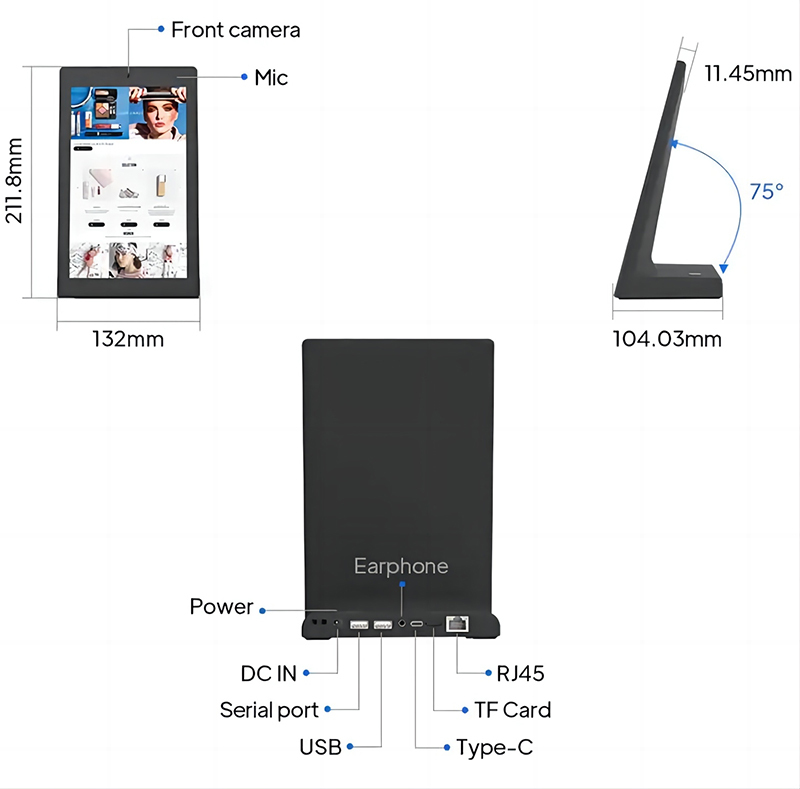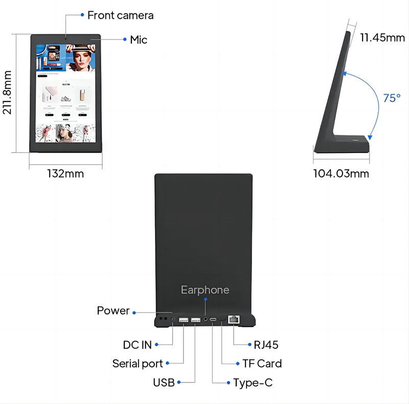 Este tablet Android em estilo quiosque foi projetado para caber perfeitamente na recepção, nos balcões de check-in dos hotéis, nas estações de serviço e nos pontos de contato dos clientes, onde o espaço é limitado, mas a interação é frequente.A estrutura em forma de L proporciona uma presença estável e elegante, permitindo que os hóspedes se aproximem naturalmente da tela e completem as etapas de feedback ou serviço sem o envolvimento da equipePara integradores e distribuidores, este dispositivo oferece uma base de hardware confiável para sistemas de atendimento ao cliente, plataformas de avaliação de espera de clientes e aplicações de autoatendimento leves.